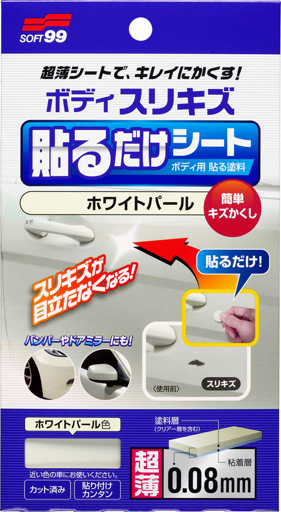 只需貼在車身的小傷痕,或小劃痕表面,即可完美的遮蓋,是愛車一族必備的推薦品。柔軟的質料即使是曲面部位也可平整的貼合,0.04-0.08mm近似於漆層的厚度,自然地與漆層表面緊密貼合,不會出現黏貼後,不雅的直覺觀感。